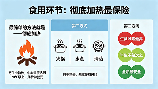 火锅、水煮、清蒸,只要熟透,基本没有风险