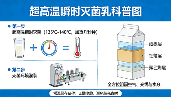 常见的超市常温奶,专业名称叫超高温瞬时灭菌乳。